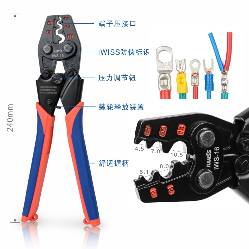 威仕多機能圧着ペンチIWS-16/38 ot裸端子utsc冷圧端子ペンチ圧線ペンチラチェット