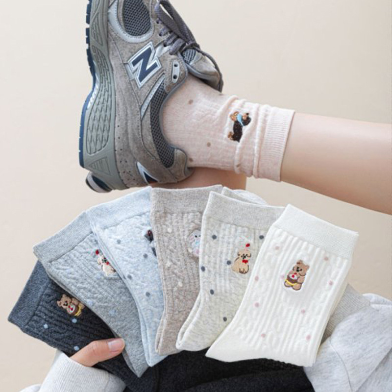 刺绣卡通日系袜子女士棉质甜美少女长袜学生百搭春秋无骨中筒袜子