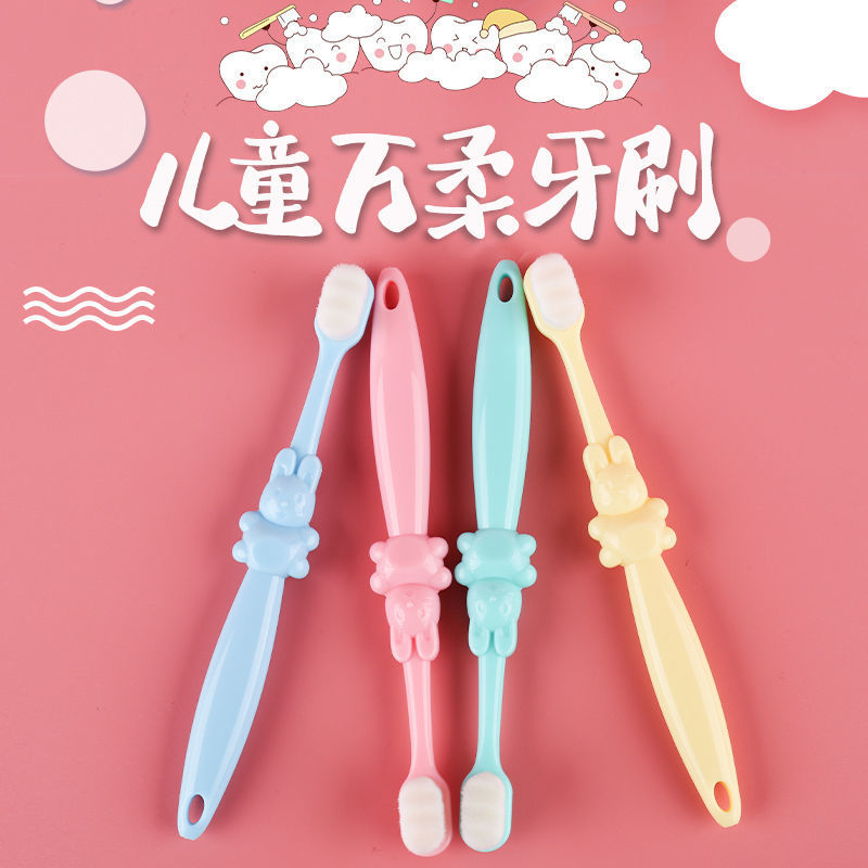 Pinduoduo 子供用歯ブラシ ウサギ、クマ、ゾウ、ライオンの形をした柔らかい毛の歯ブラシ 乳歯用 3~6歳半のお子様向け