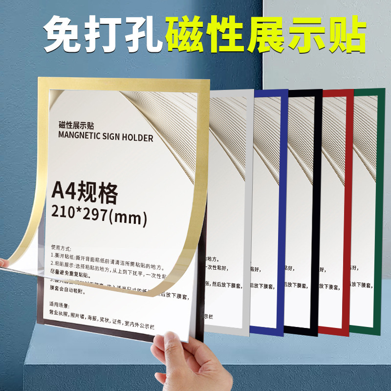 a4磁性展示贴免打孔磁力贴磁吸无痕贴片A3照片文件框证件奖状收纳
