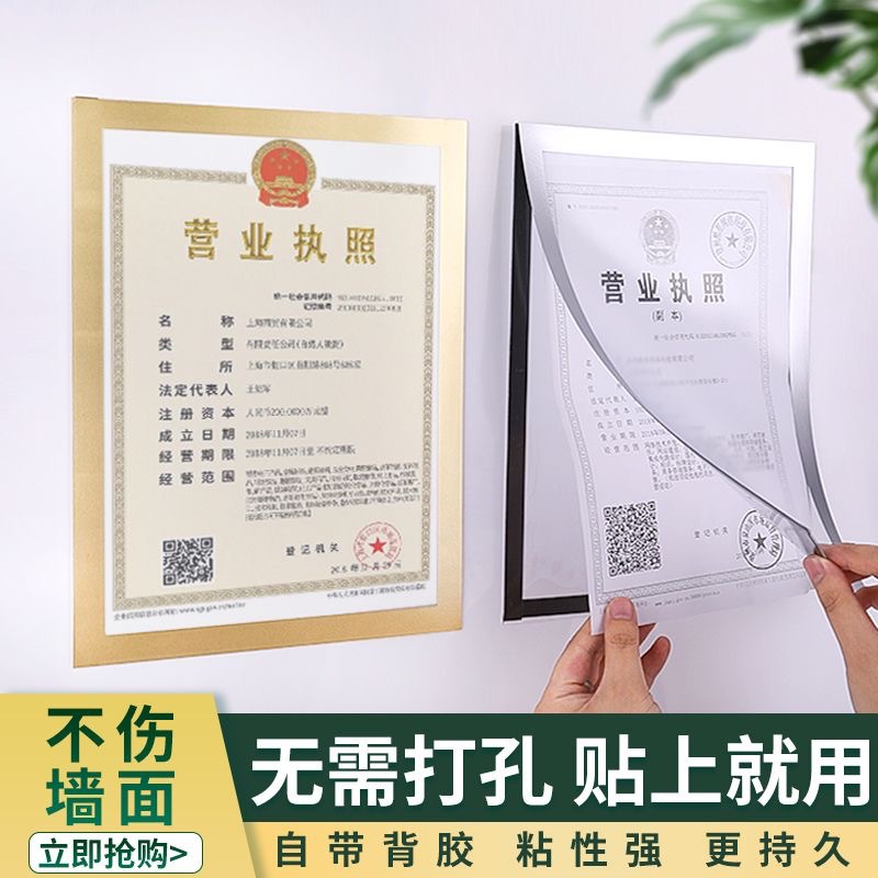 営業許可証は磁気展示を貼って保護枠の絵の枠の壁を貼って穴を開けないでください。