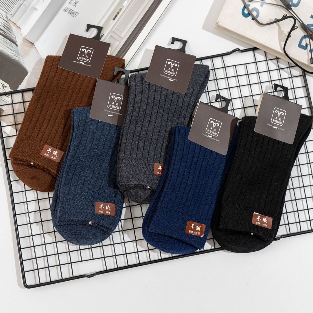 秋冬の新型靴下の純色のカシミヤのウールの靴下の男性の中で筒の靴下の双針は厚くて暖かいレジャーの卸売りを厚くします。