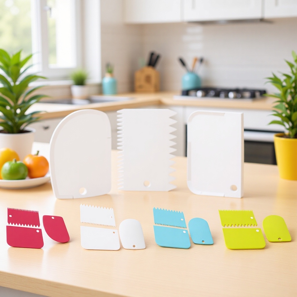 クリームのプラスチックのスクレーパーのケーキの切断の刀のカラーのスクレーパーの3セットの台所のベーキングのツールの家庭用のナイフの現物