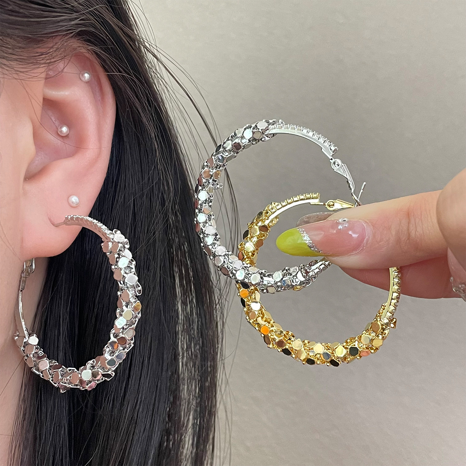 S925银针金属菱形镶钻超闪个性潮人耳环日韩时尚耳钉网红同款耳环