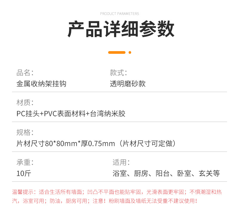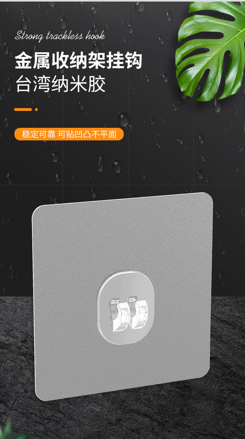 品名:扁铁收纳架 不锈钢制物架专用挂钩 无痕贴 卡扣贴