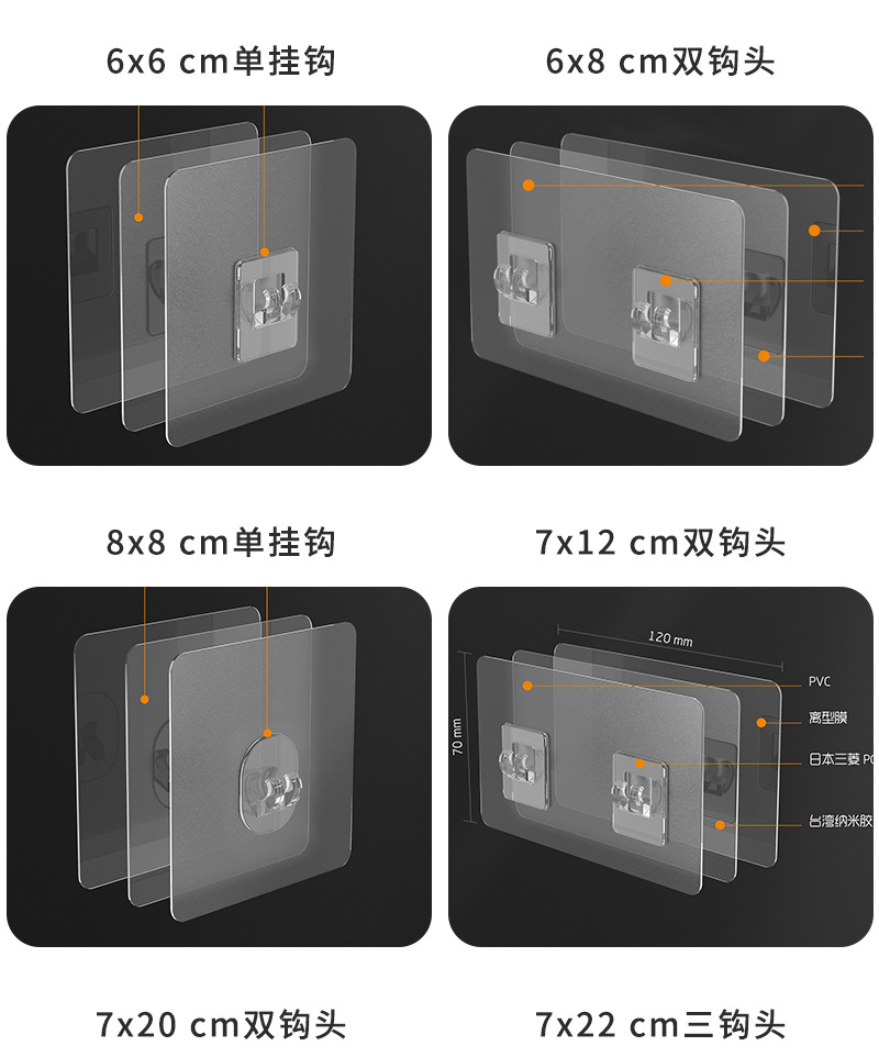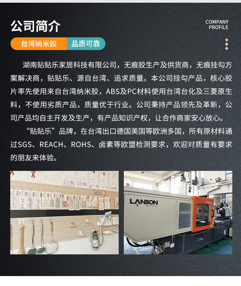 6、不残胶:贴贴乐挂钩采用台湾进口合成树脂经专业配方加工而成,贴的牢且不残胶(不良商家让你贴上但是取下后也让你刮墙面);
