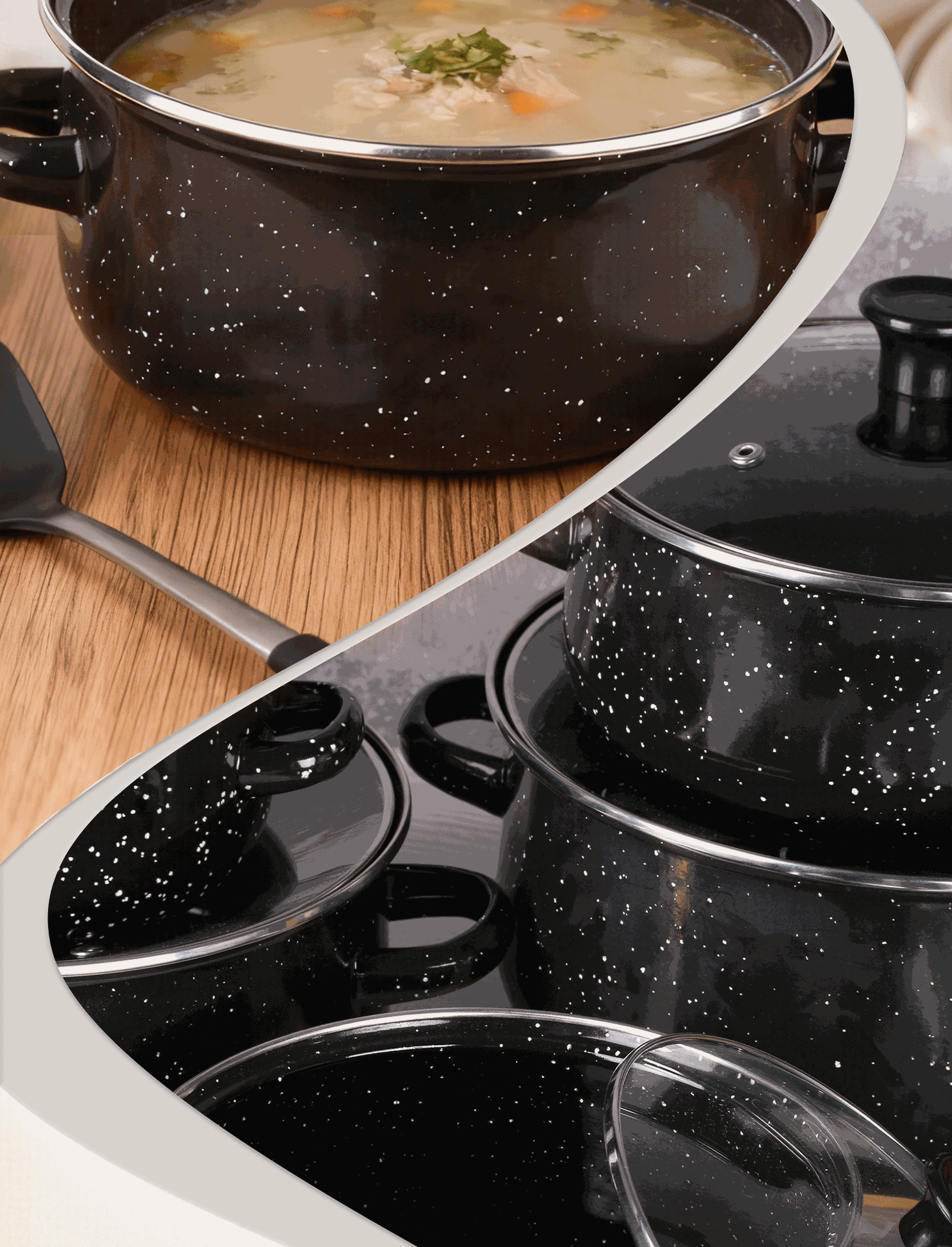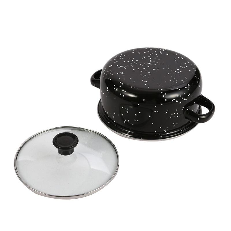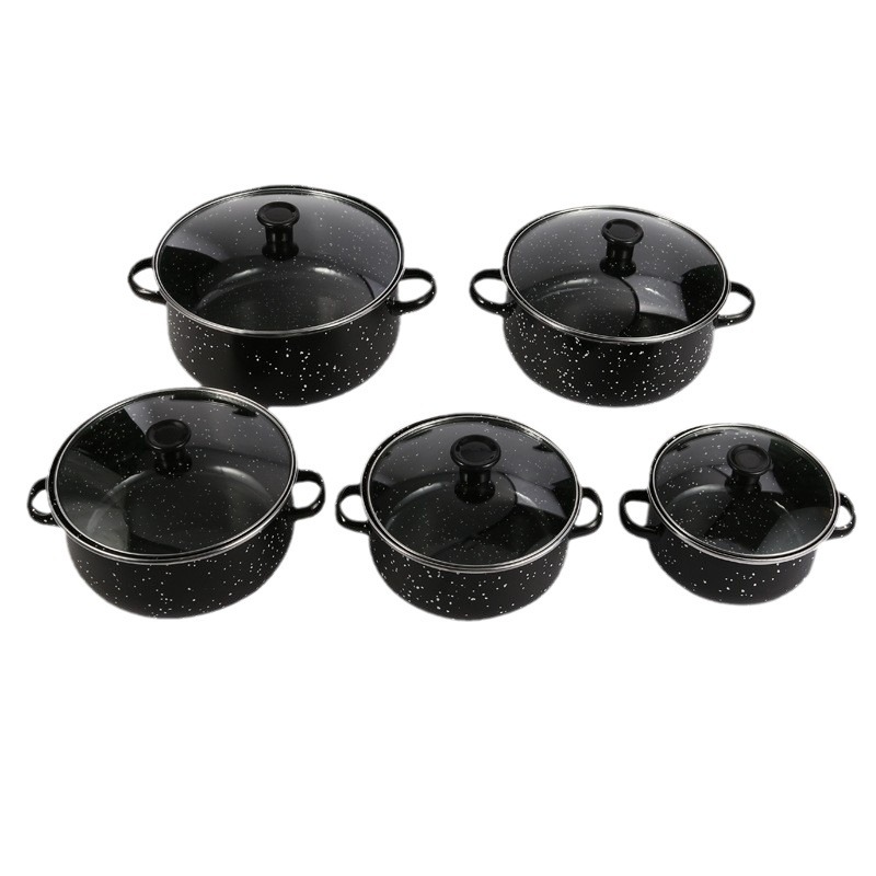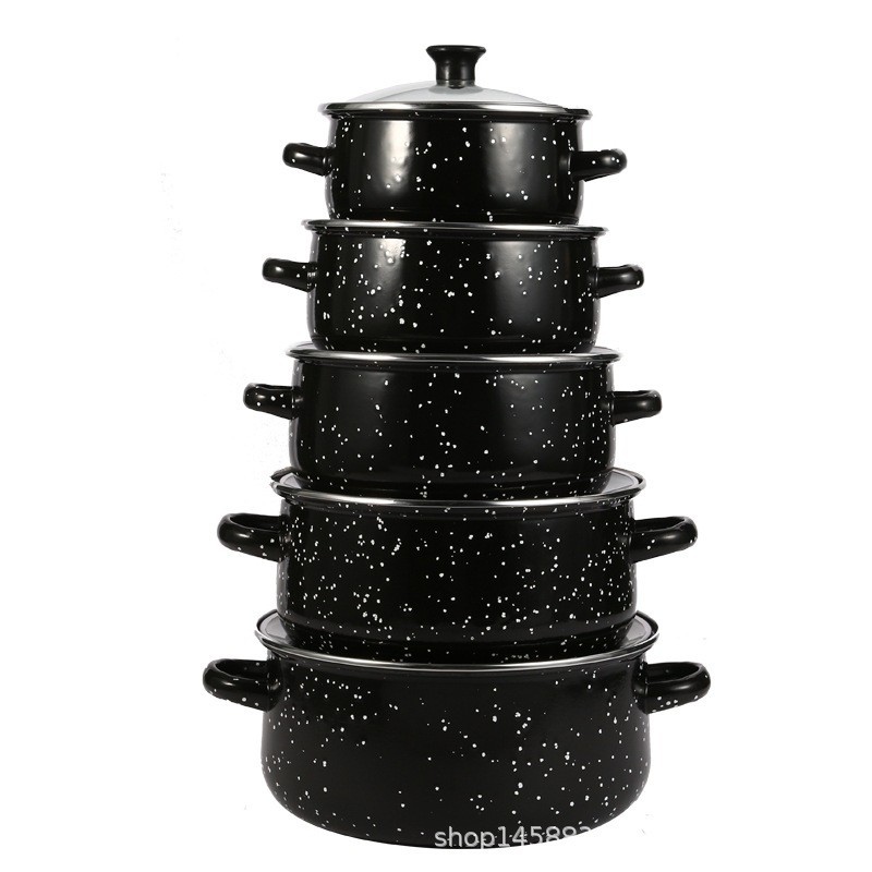 現物卸売りエナメル鍋5点セットエナメルスープ鍋黒麻点シチュー鍋スープ鍋双耳鍋料理