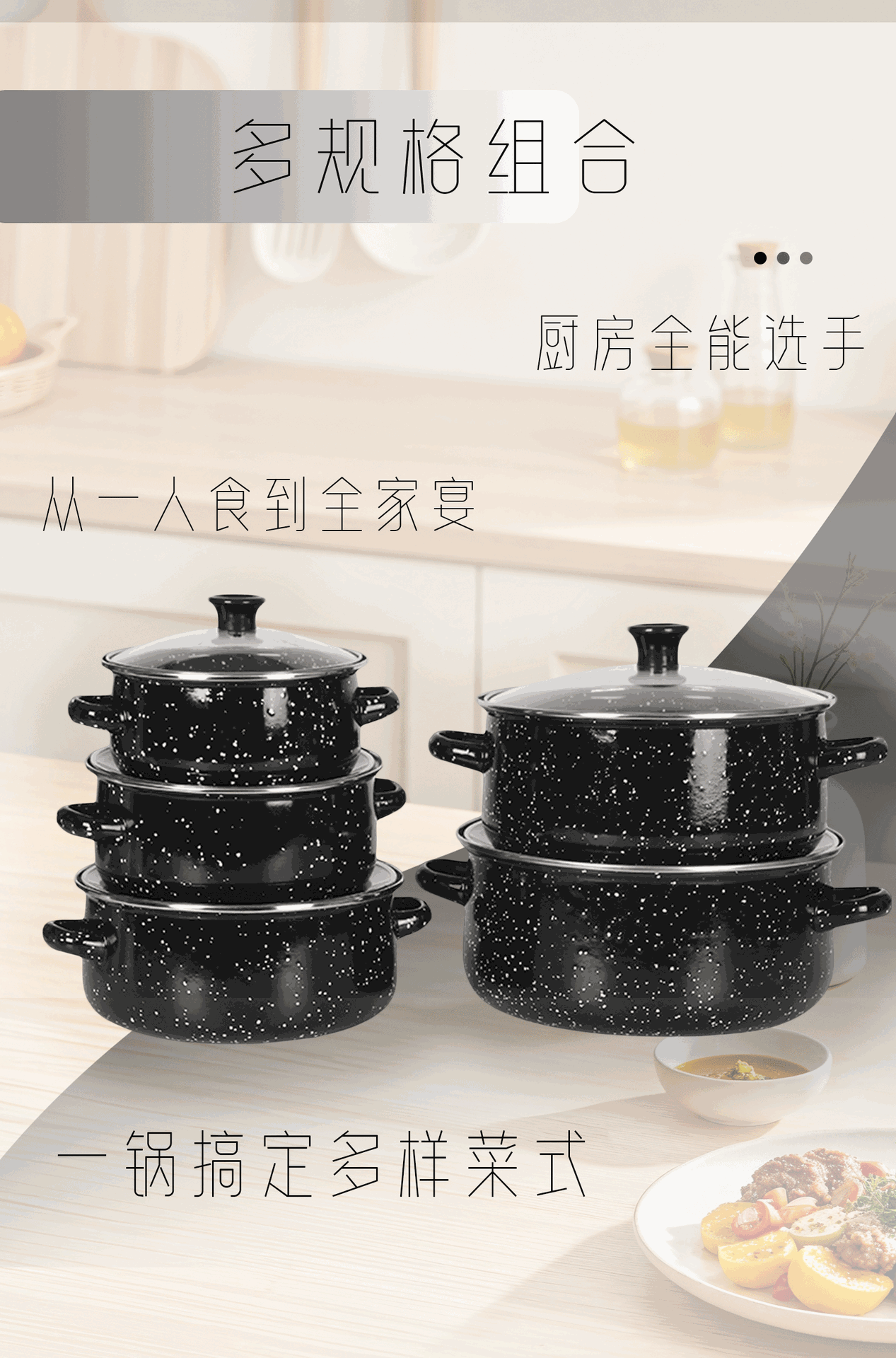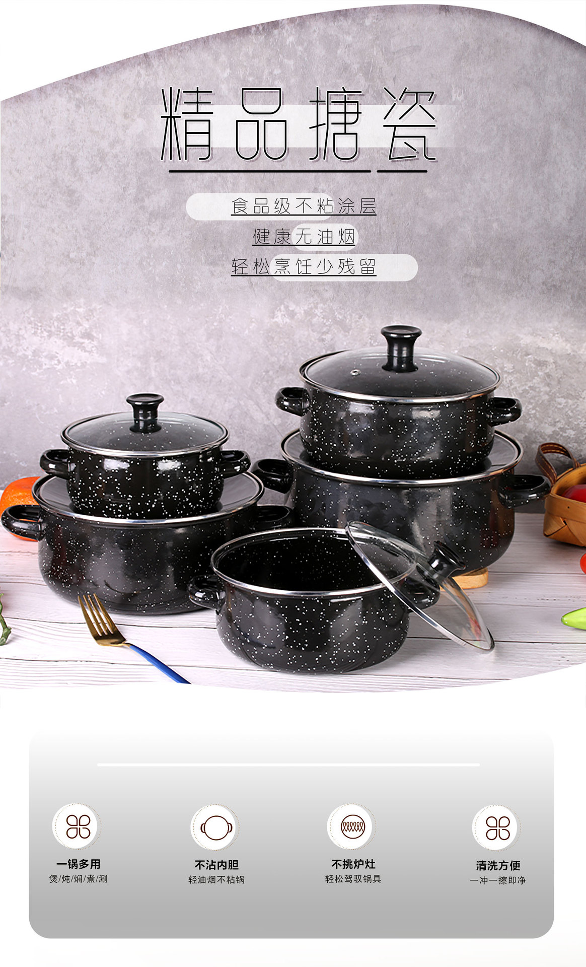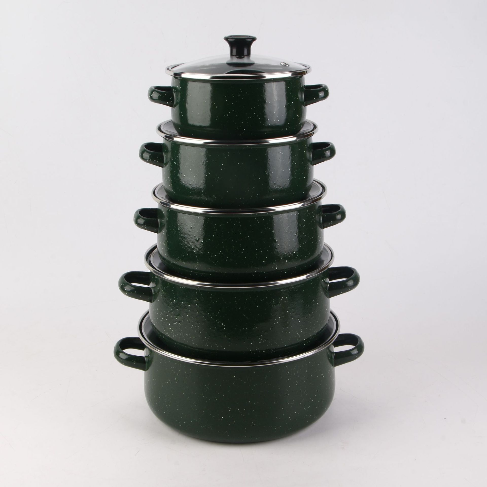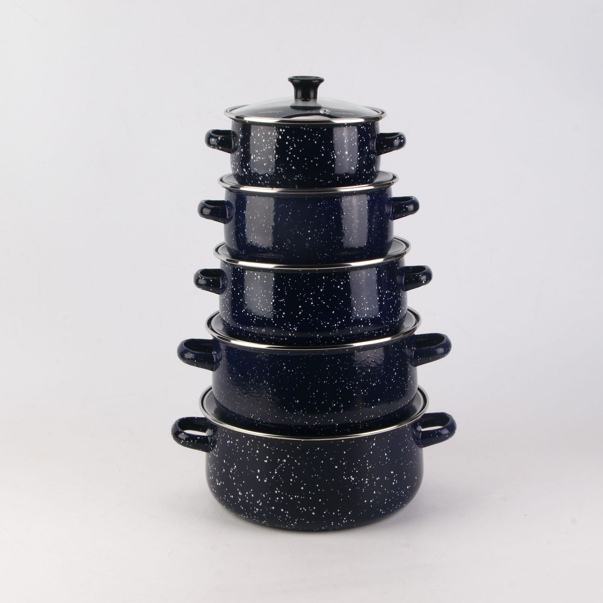 现货批发搪瓷套锅五件套珐琅汤锅电磁炉明火通用多色可选麻点炖锅