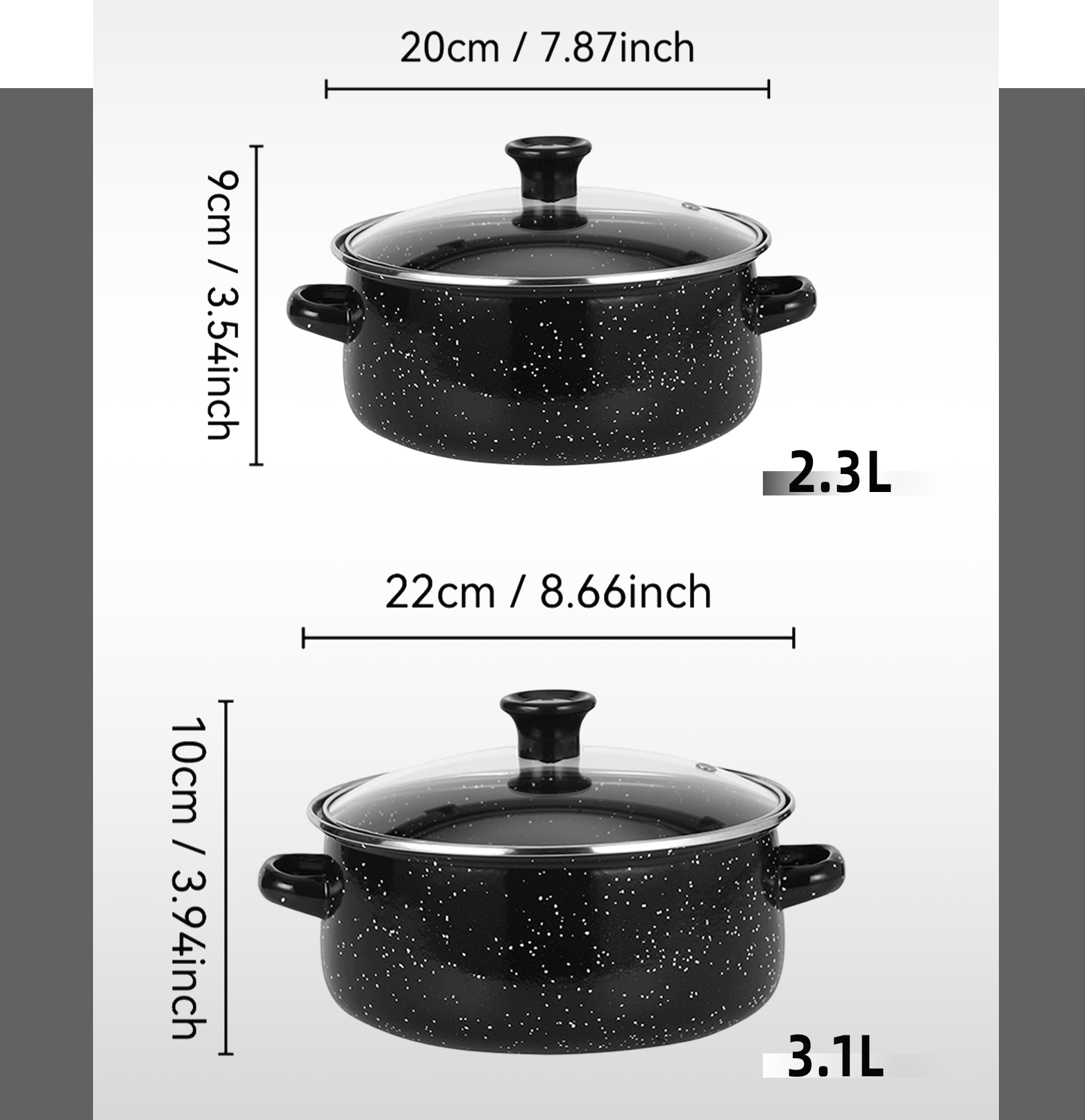エナメルドット鍋 欧米向け輸出 増厚ガラス蓋 エナメル5点セット ブラックドットシチューポット 673DG-K