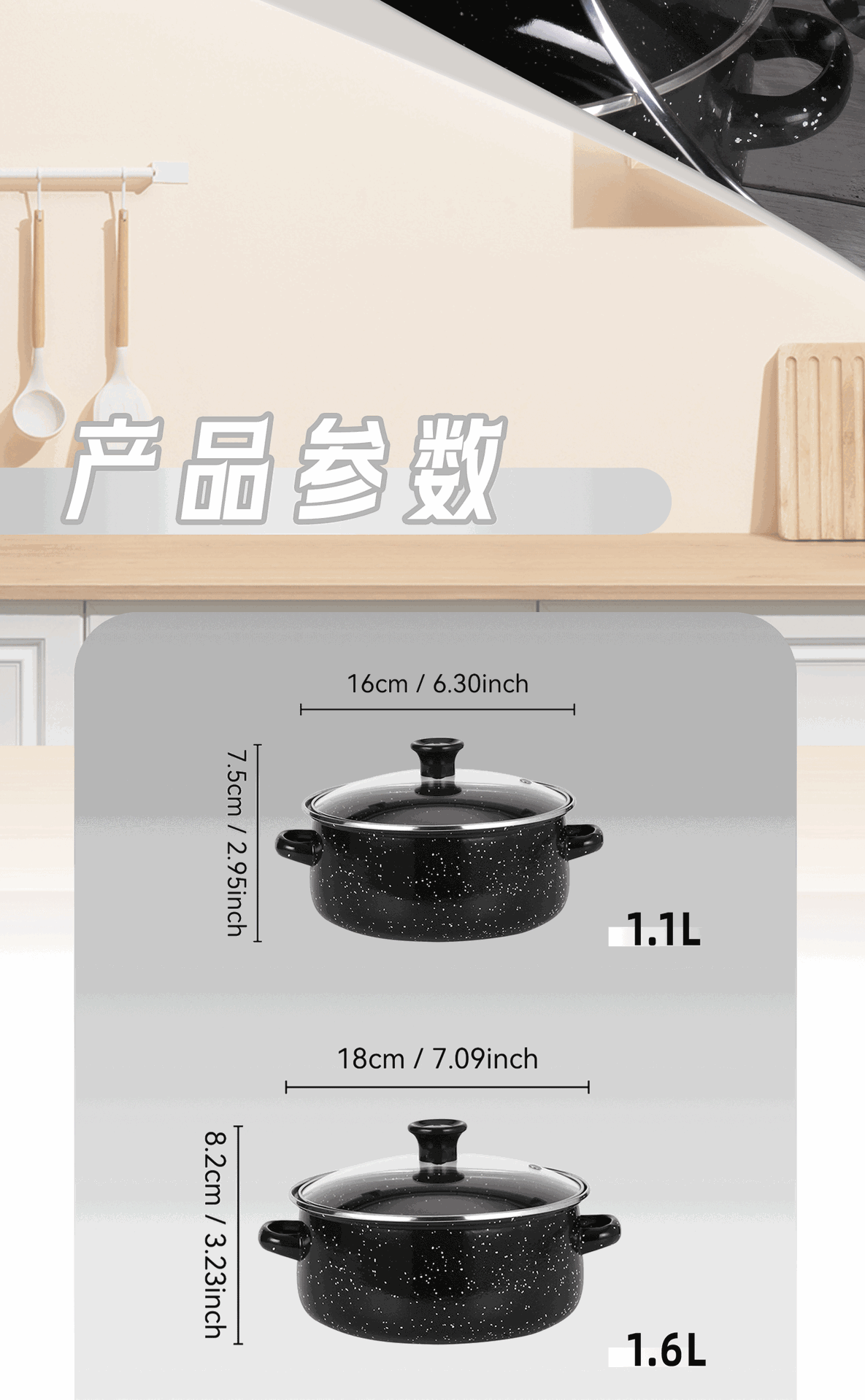 加厚三件套双耳搪瓷锅 珐琅汤锅 双耳搪瓷迷你汤锅小火锅宝宝辅食