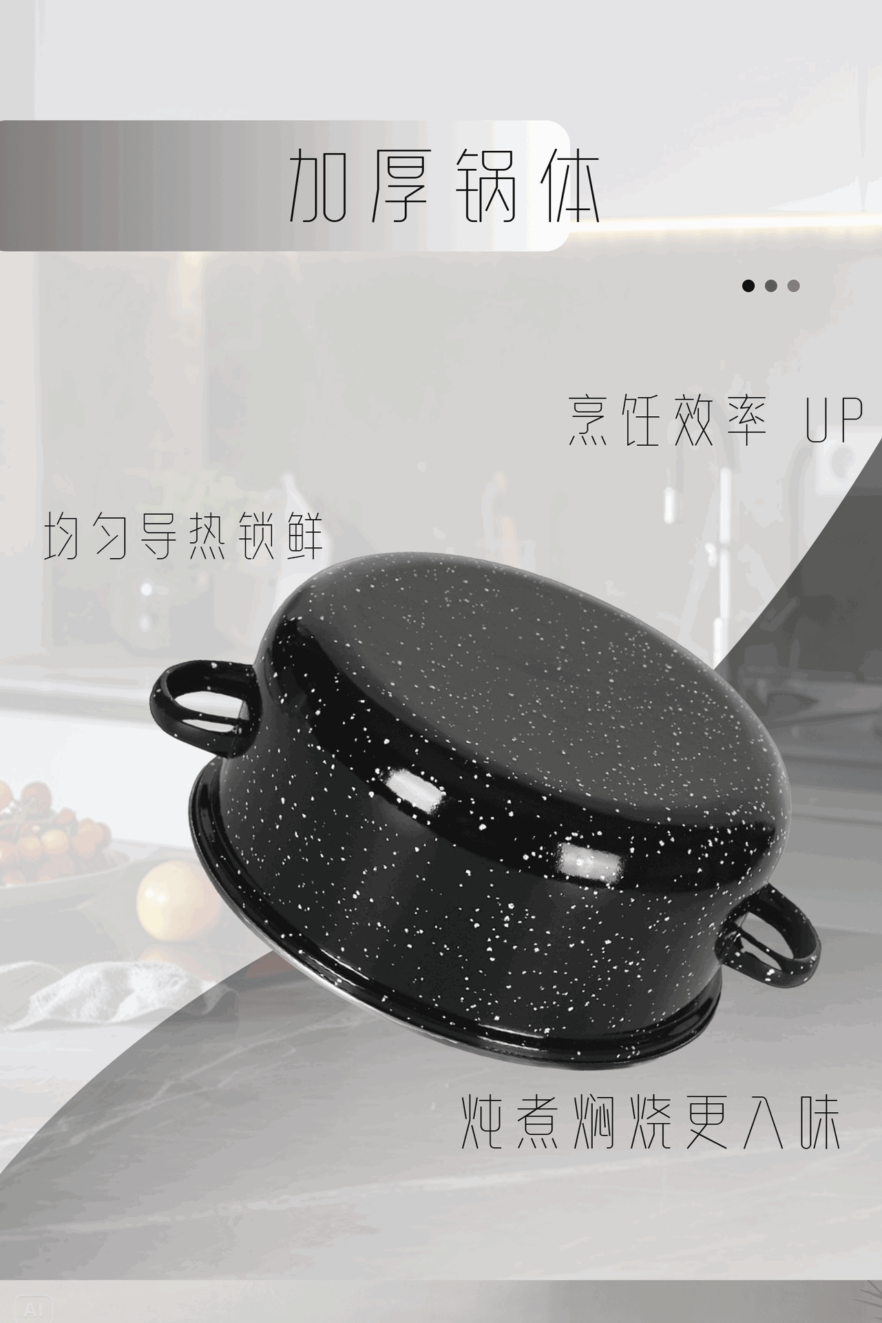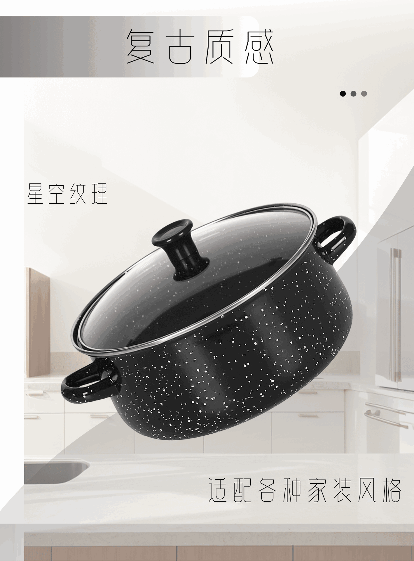 国境を越えたスポット卸売りエナメルスープ鍋黒麻点三点セットスープ鍋671g-k緑青カレー色