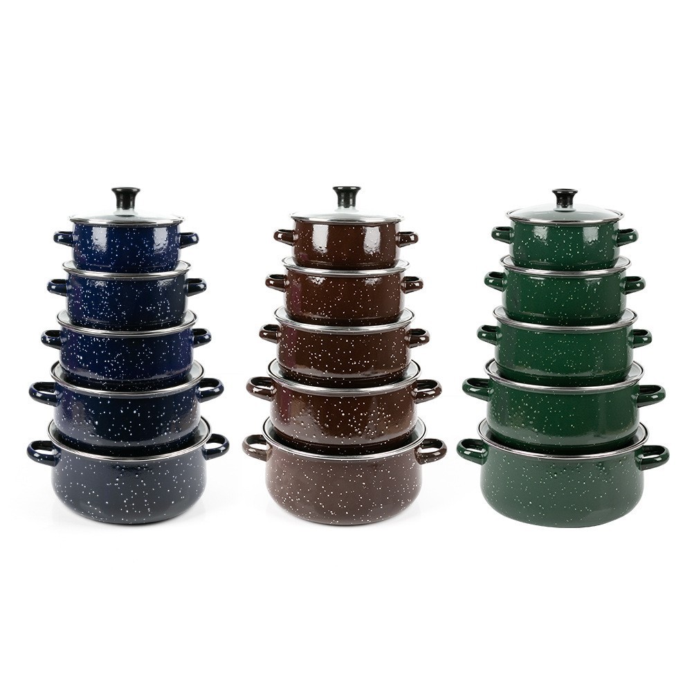 スポット卸売エナメルドットスープポット5点セット平底エナメルポットシチューポットガス電磁調理器ラベル付き