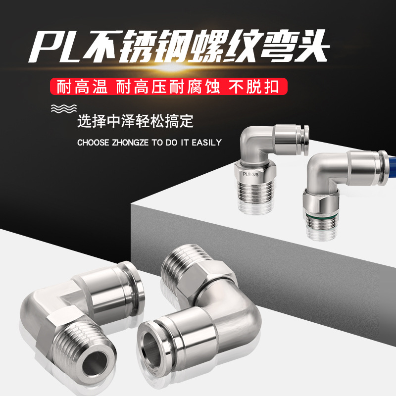 304ステンレスベンド直角継手エアエルボpv6/8/10/12/16ホースクイックノズル