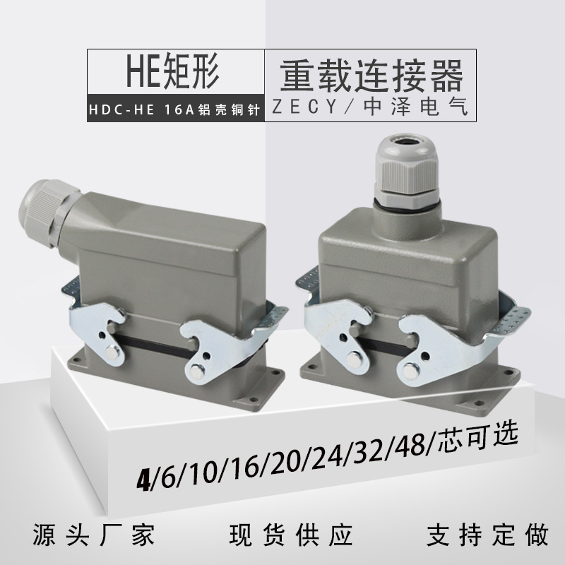 矩形重荷重コネクタhe-6芯10芯16芯24芯32芯48芯f/m工业航空プラグソケット