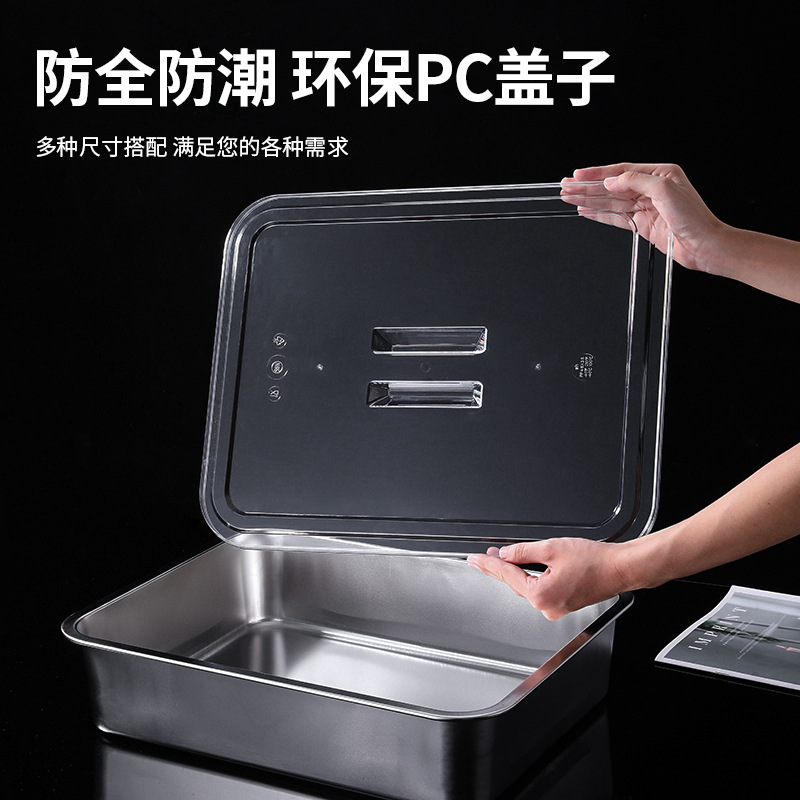 ステンレス製の四角い皿、家庭用プラスチック蓋、長方形の透明蓋、食堂の食品用プラスチック蓋、蓋付きの野菜入れ、業務用