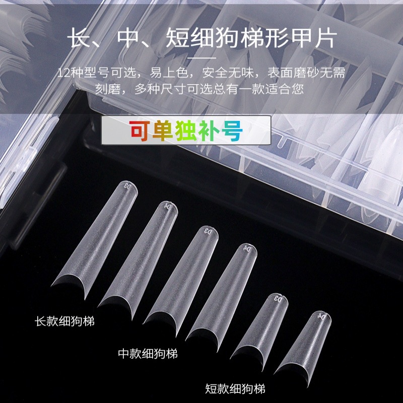ネイルマニキュア薄い犬DカーブT台形細いウエスト浅いハーフスティックフェイクネイルピースロングデニム無料彫刻フレンチフロスト