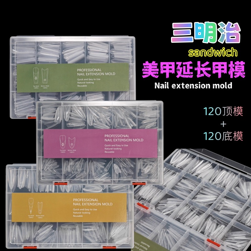 新款三明治甲膜快速延长无纸托水晶光疗免建构模具美甲店用