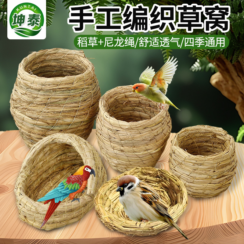 メーカー草編み鳥の巣ハトの巣絵眉鳥の巣保温掛け虎皮オウム鳥の巣草の巣繁殖巣用品