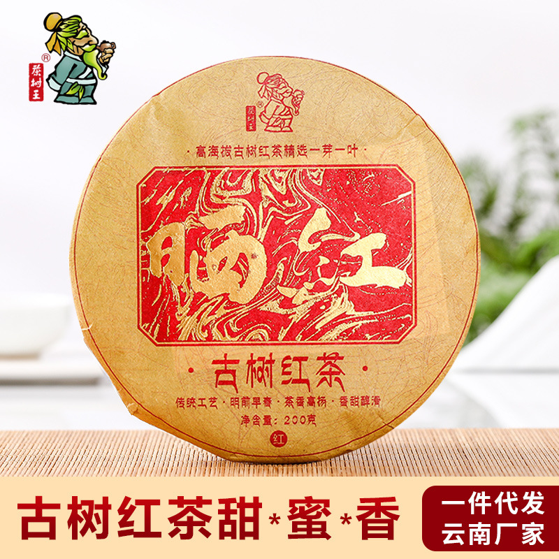 雲南茶樹王茶工場茶葉卸売り古樹日焼け赤200g茶餅紅茶