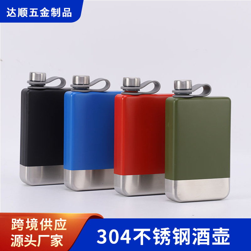 アマゾンステンレス鋼スクエアポットスプレーペイントスクエアワインボトル車のステンレス鋼ワインボトル旅行フラット小さなワインボトルクロスボーダー