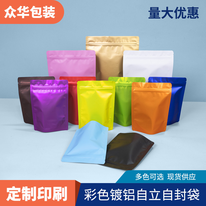 カラー自封袋アルミメッキ自立餌間食包装袋食品茶葉封袋白色自立自封