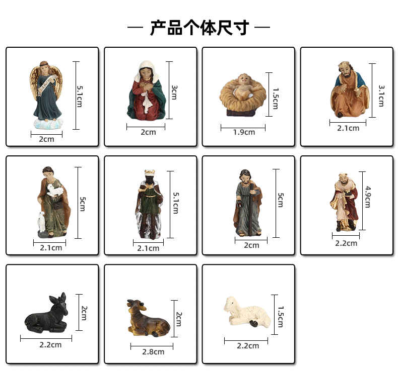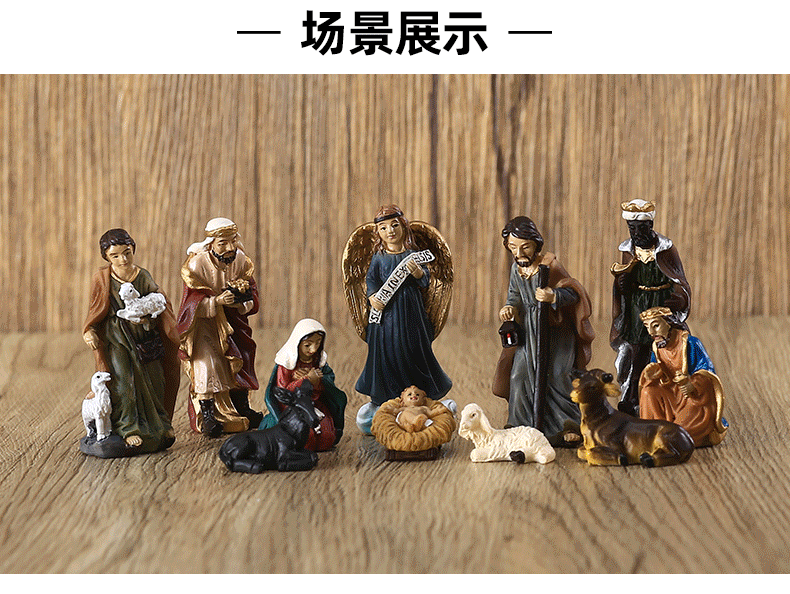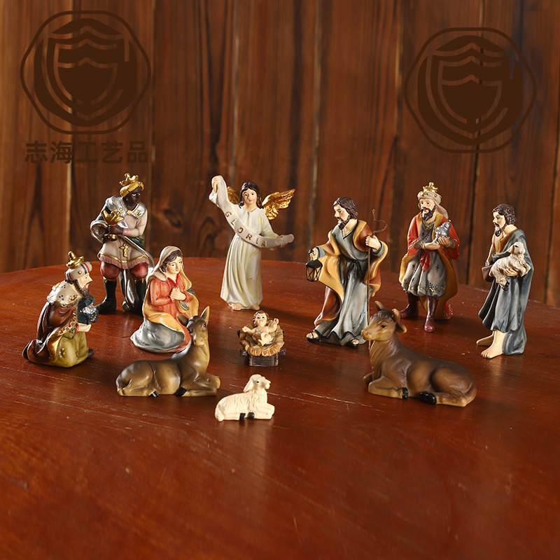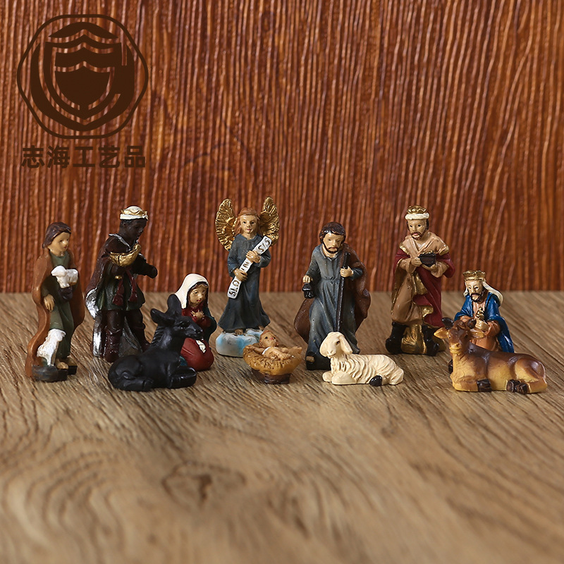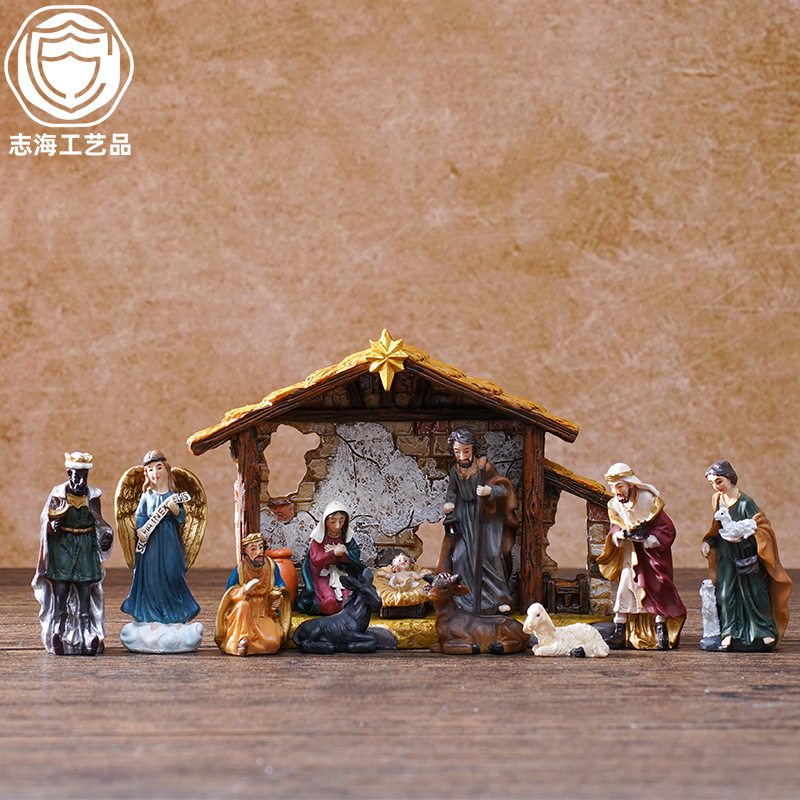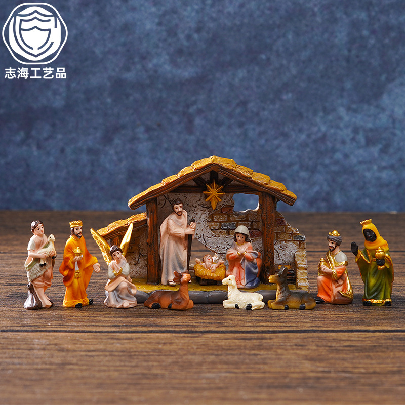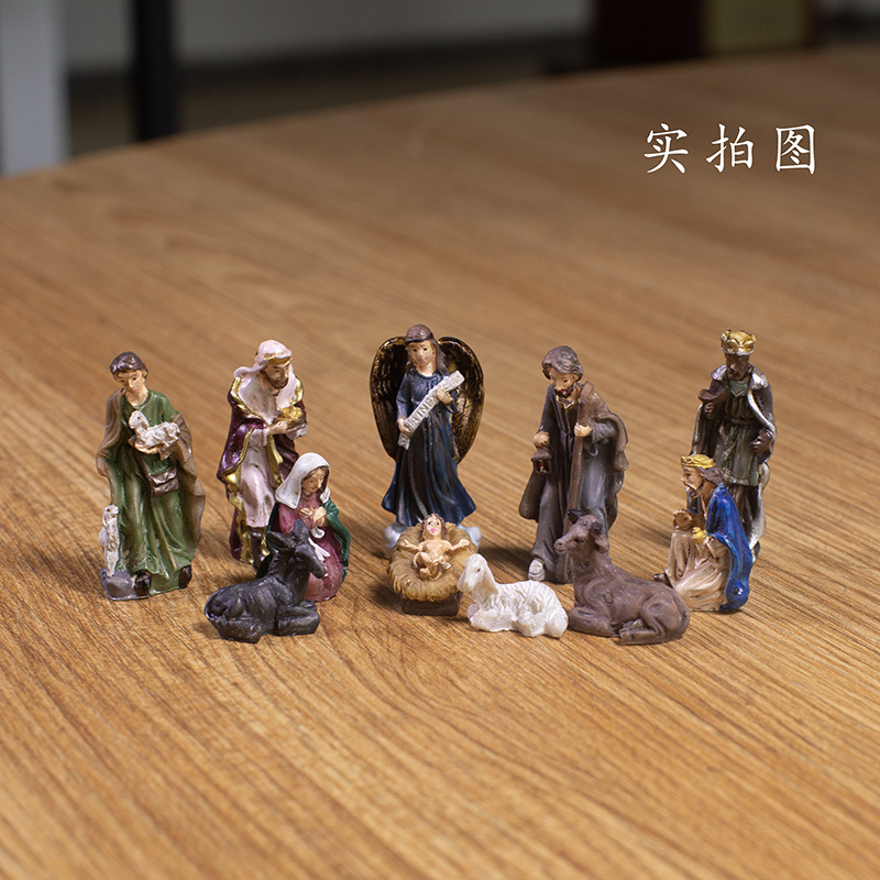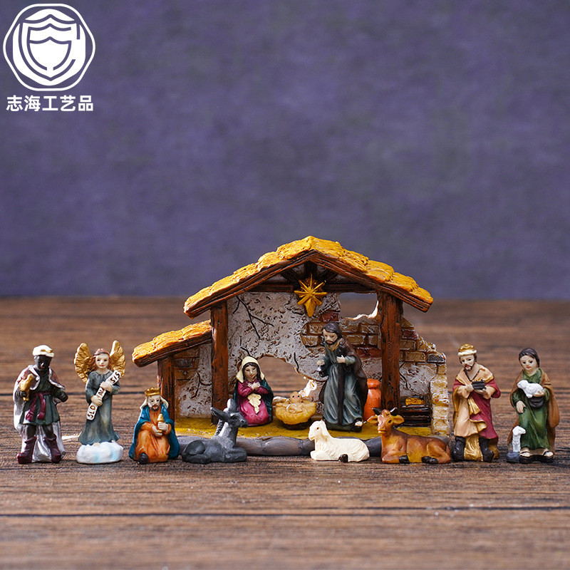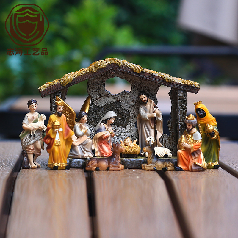 越境サプライヤー クリスマス 高さ16.7CM キリスト降誕場所セット 組み合わせ可能な樹脂工芸品