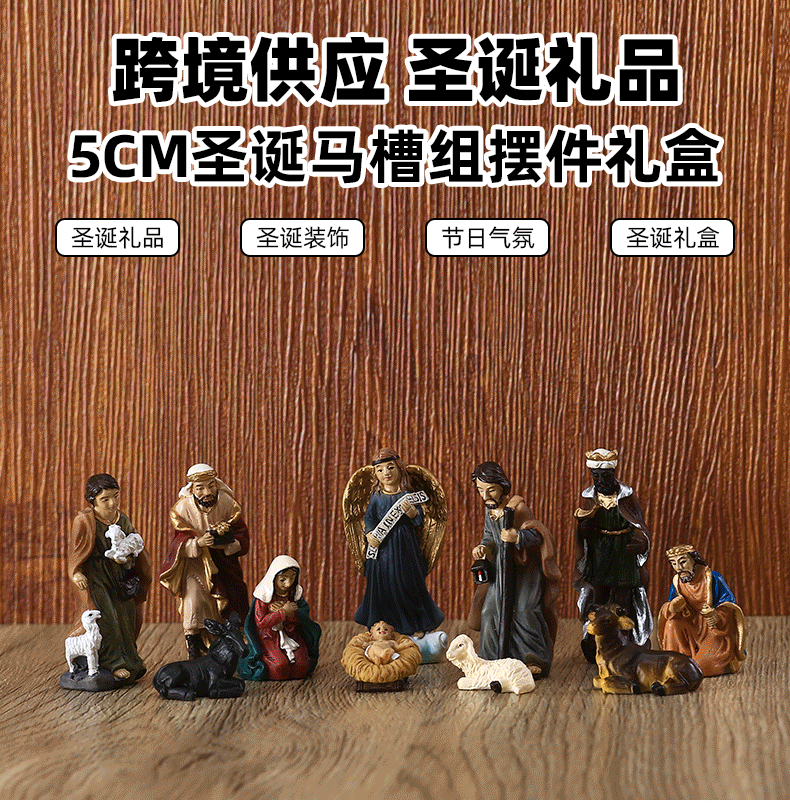 5CMの高さの古典的なクリスマスの飼い葉桶セットの装飾品ギフトボックス、クリスマスプレゼント、樹脂工芸品の越境供給