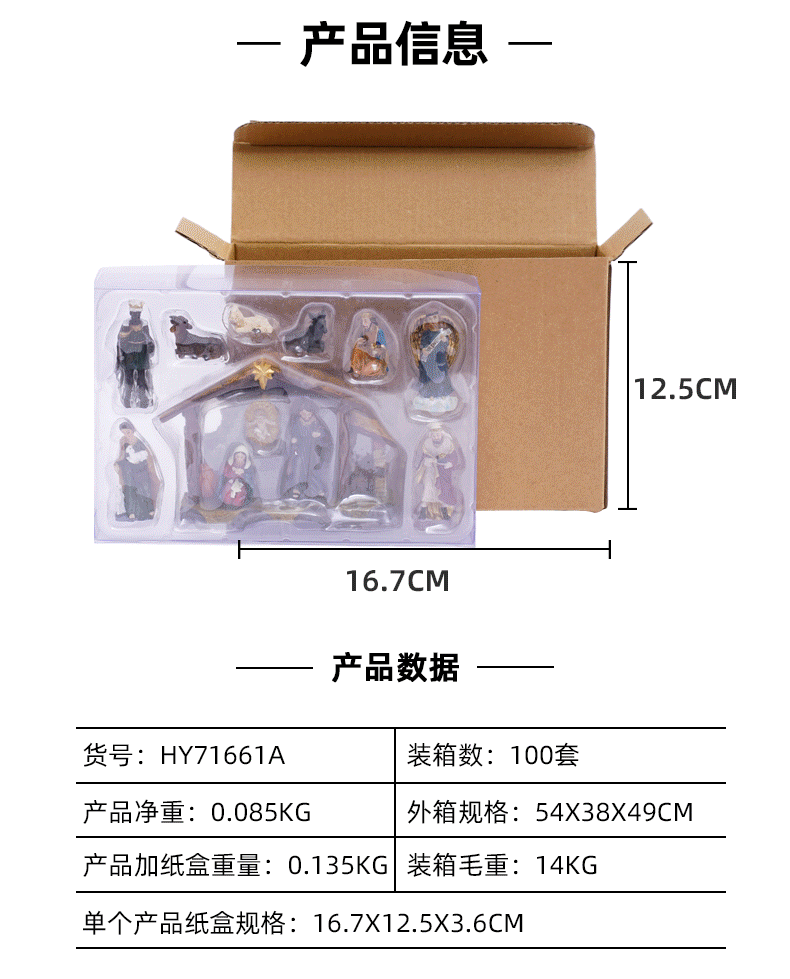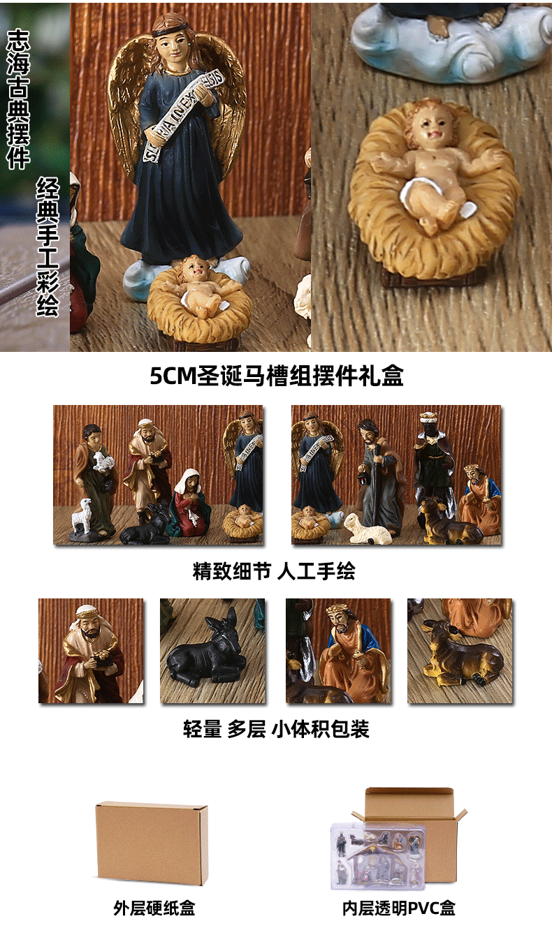 3CMの高さの古典的なクリスマスの飼い葉桶セットのシーン装飾ギフトボックス、クリスマスプレゼント、樹脂工芸品の越境供給