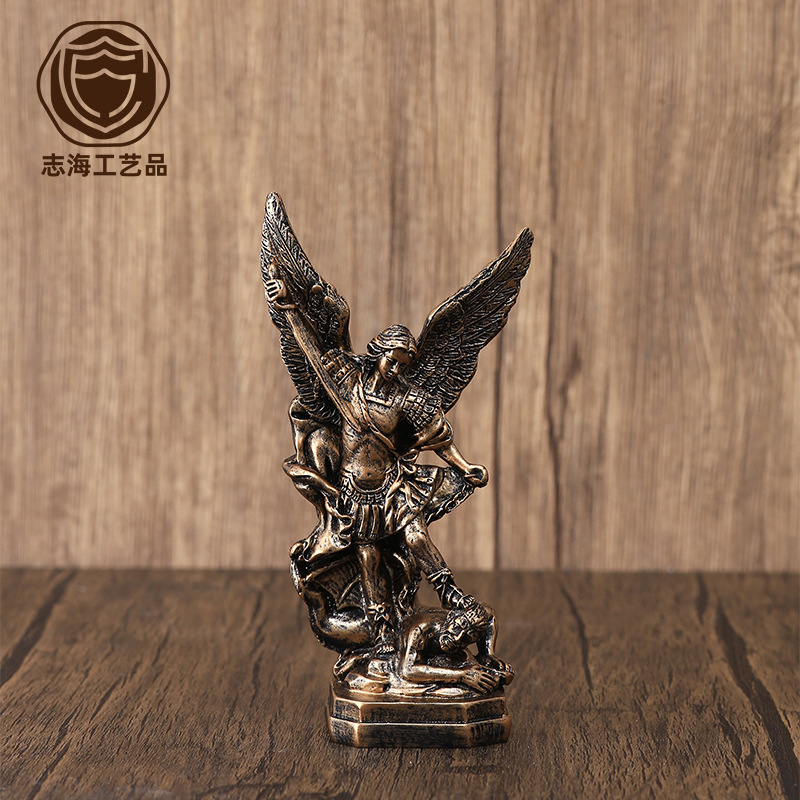 13CMの高さの古典的な銅色の殺魔聖ミルガ天使像の置物装飾樹脂工芸品の越境供給