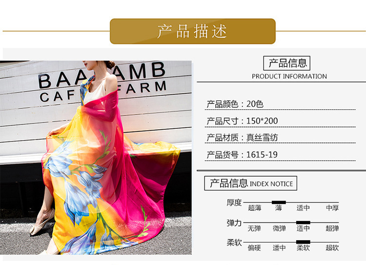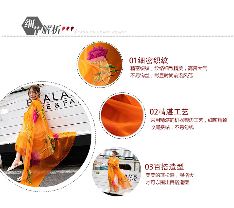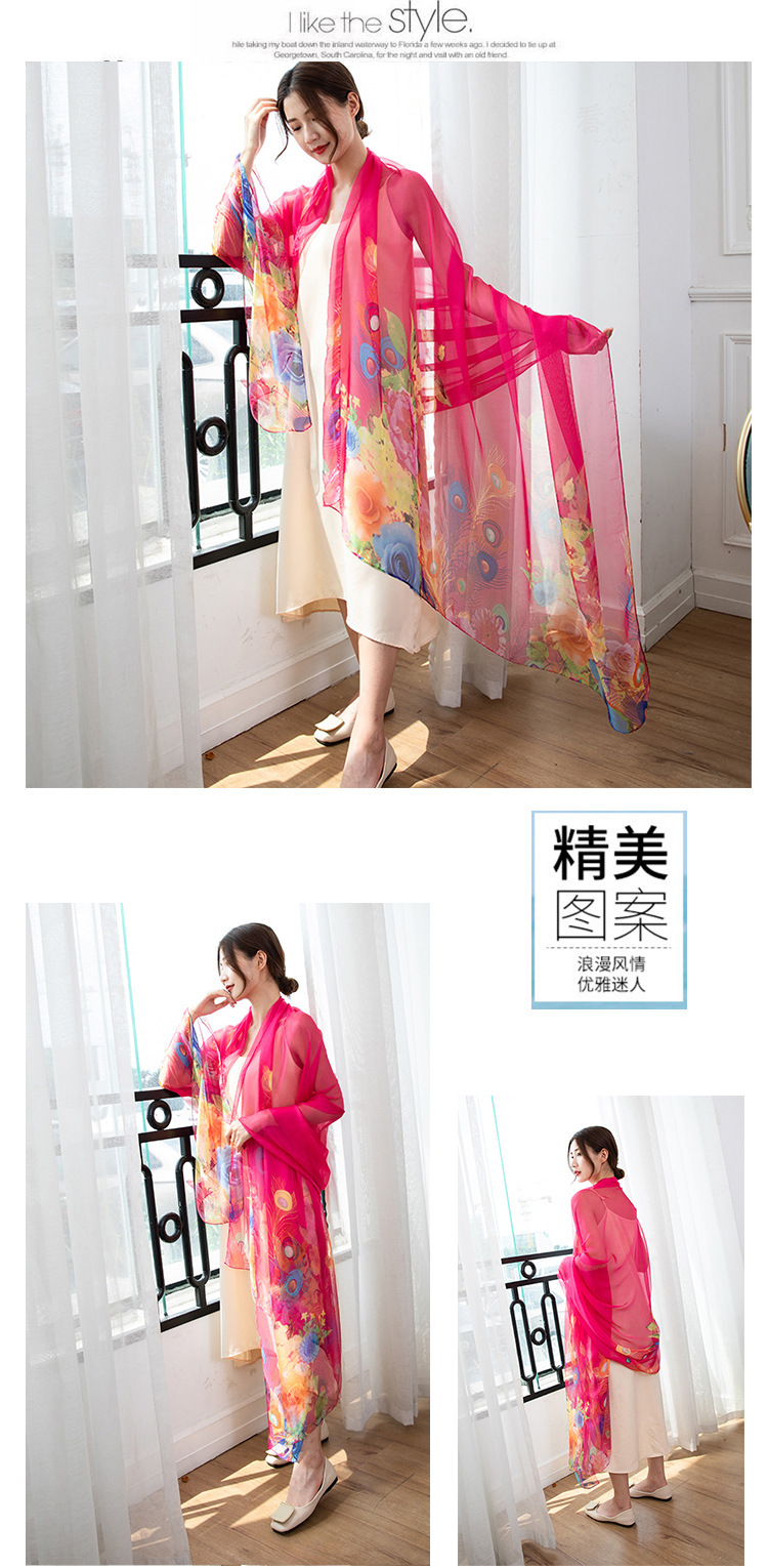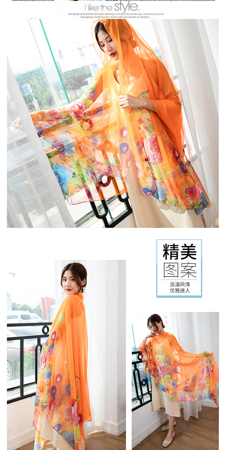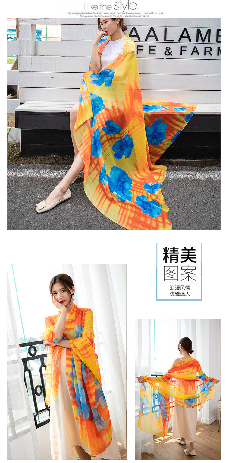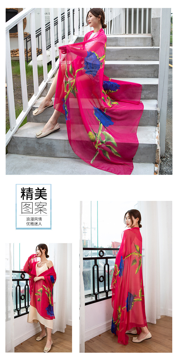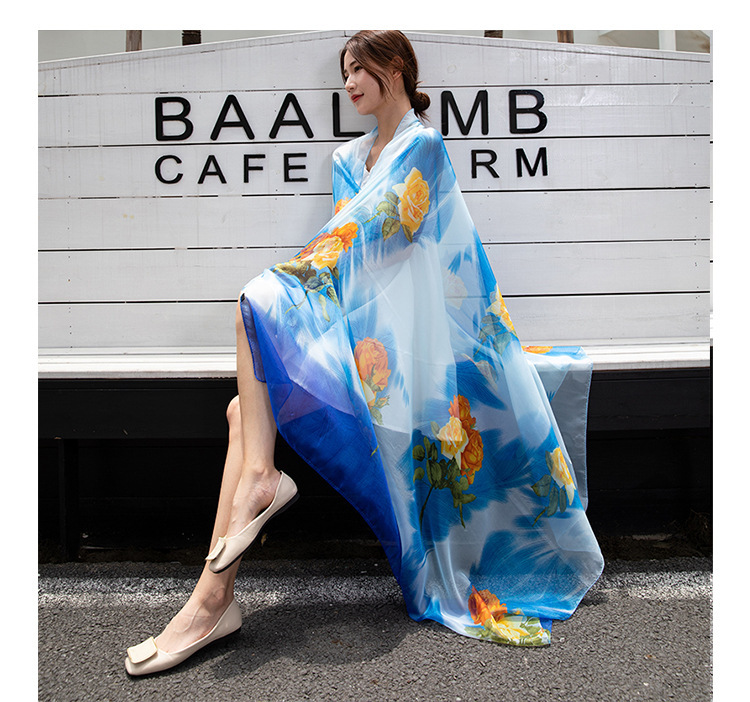 シルクタオル女子春秋日焼け止めシフォンプリントシルクタオル長条ビーチタオル露店マフラー卸売りプレゼントscarf