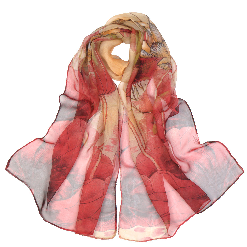 夏蓮日焼け止めジョーゼットシルクスカーフ海辺ビーチタオル卸売蓮池月光薄いスカーフ QQ001 サンシェード