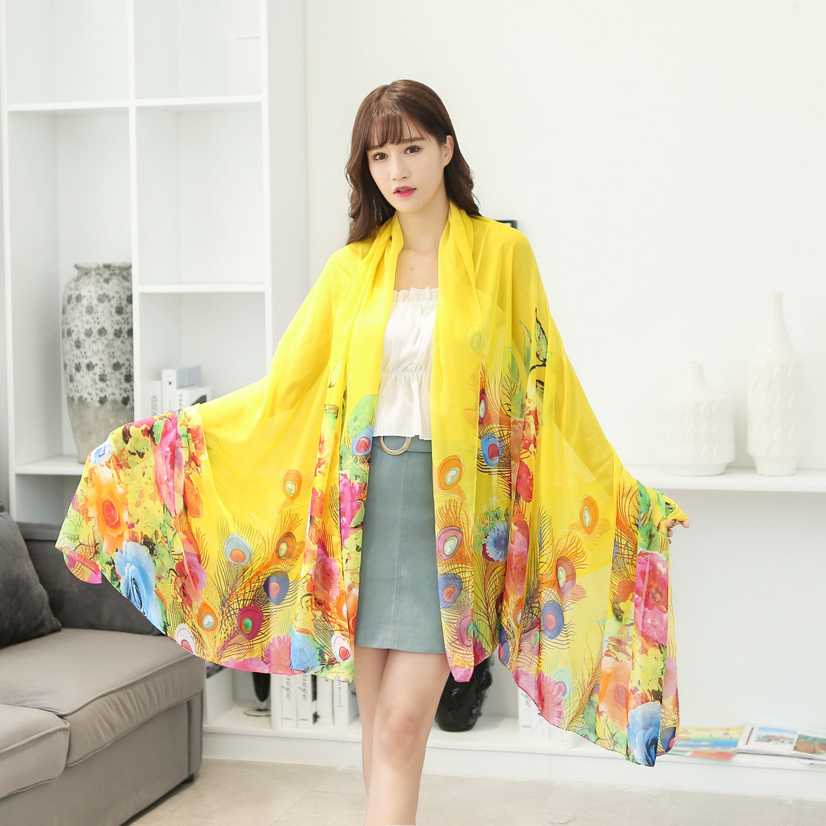 超巨大シフォンのプリントのマフラーの白いマントの両用の女性の韓国版の秋冬の長いタイプのシルクのタオルのビーチタオルの女性の卸売り