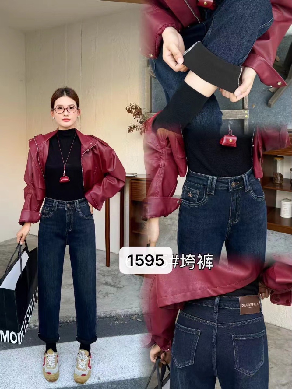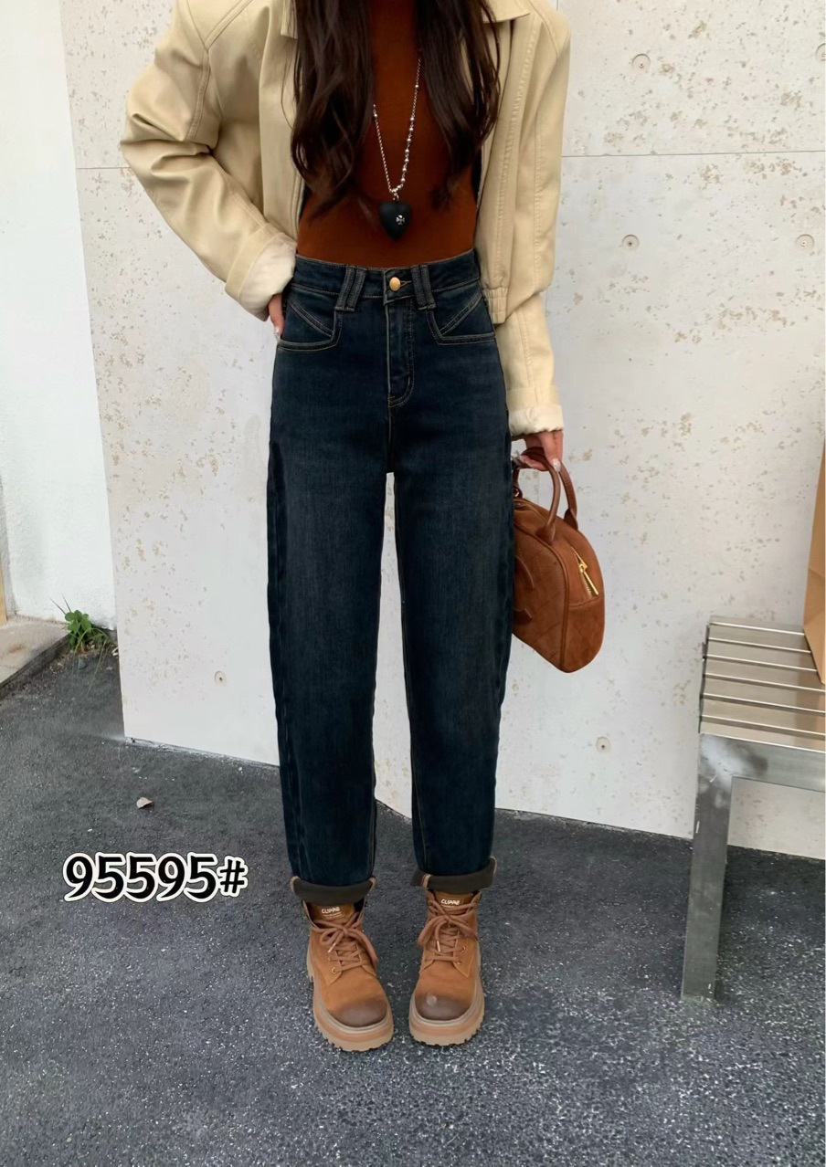 95595冬季新款加厚植绒高弹哈伦牛仔裤女宽松显瘦百搭哈伦老爹裤