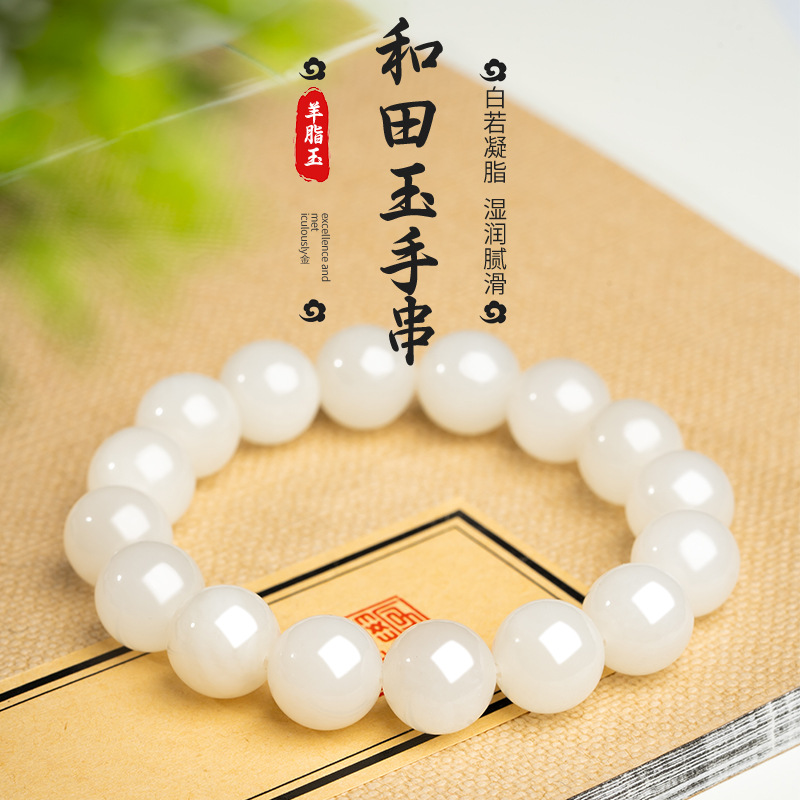 天然Hetian翡翠マトン脂肪白翡翠ブレスレット女性の氷透明ハイエンドブレスレットブレスレット卸売スポットガールフレンドギフト
