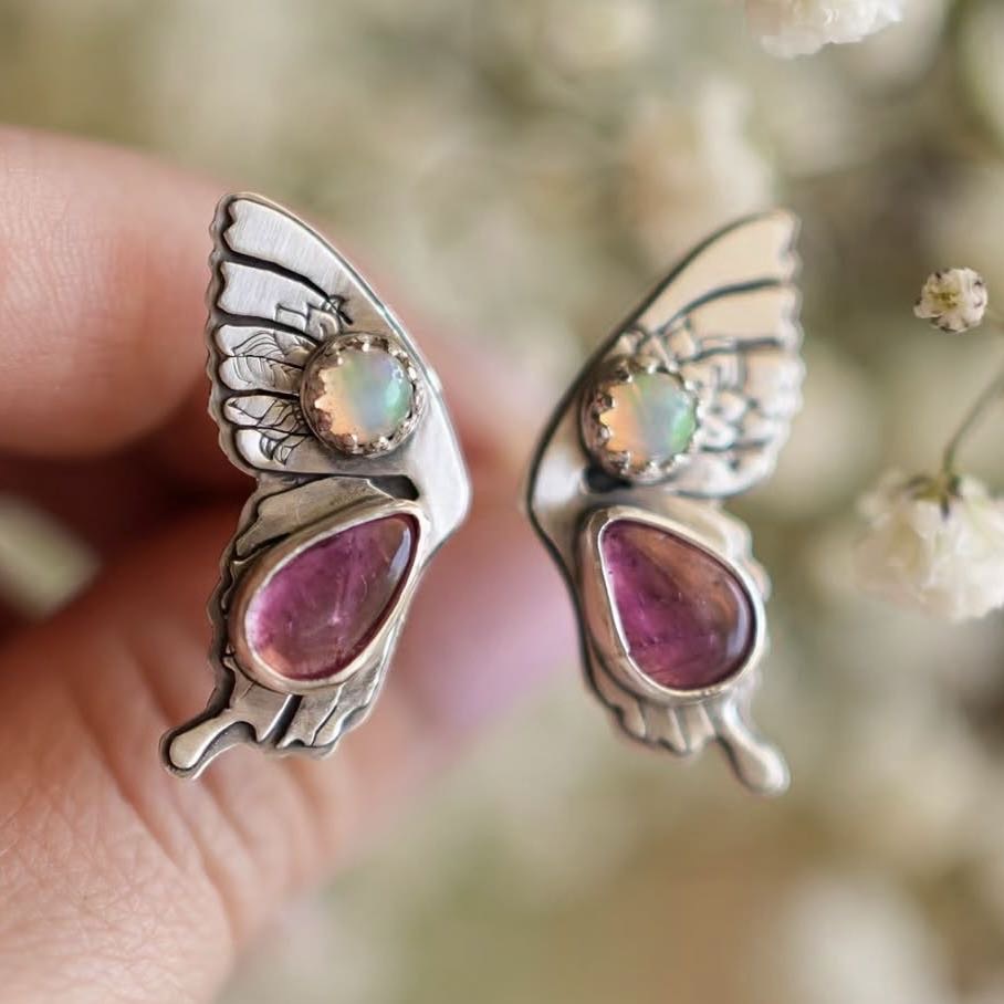 三杰 环保合金新款开口蝴蝶女士戒指 镶嵌澳宝红宝石饰品网红手饰