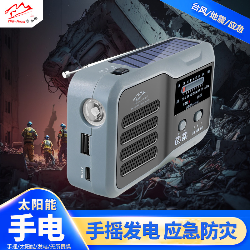 屋外緊急ラジオ手回し発電懐中電灯携帯型防災戦備物資多機能救援筒