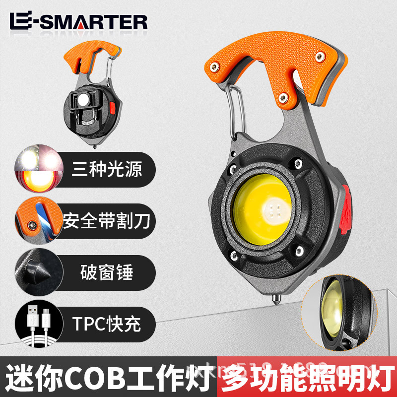 COB手持工作灯USB充电 LED带磁铁挂钩户外应急便携手电汽修检修灯