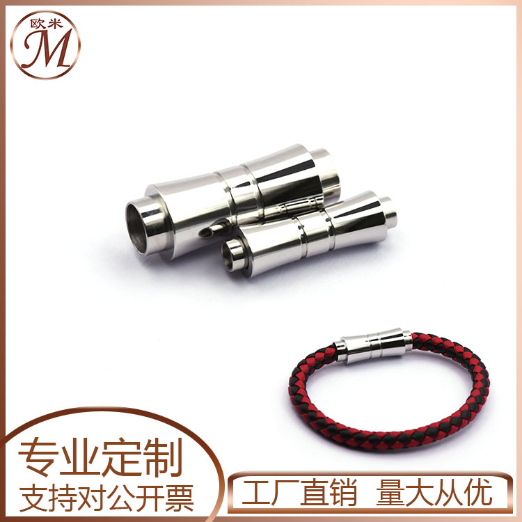 公司主要生产不锈钢304、316L首饰配件有: 不锈钢磁铁扣(各种规格形状(圆形、方形、 菱形,异形等)扣头),皮绳扣,按扣,龙虾扣; 线圈(钥匙圈,开口圈,