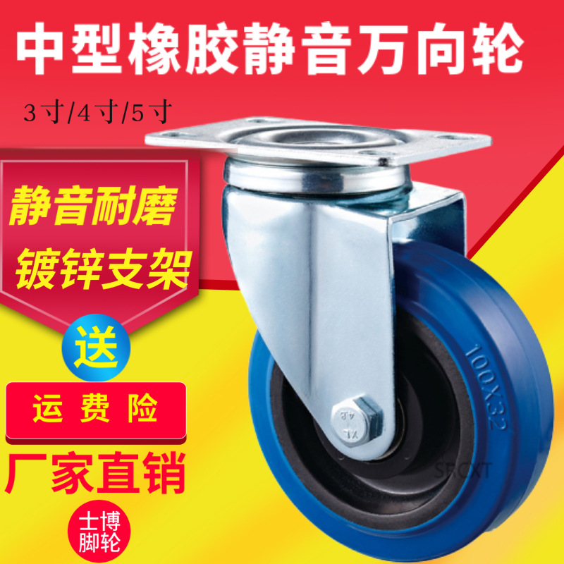 現物は3インチ4インチ5インチ中型青色弾力活動輪静音キャスターゴム輪手押し車輪を供給している
