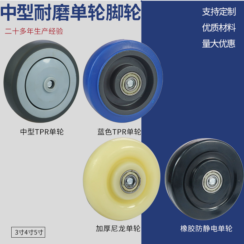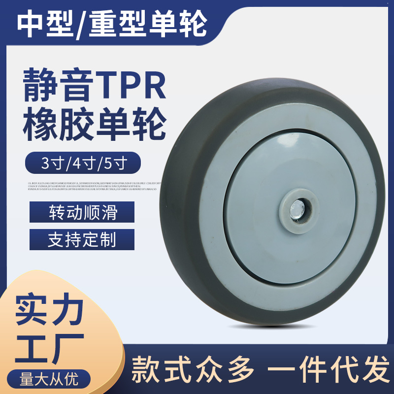 3インチグレーtpr単輪6インチ静音車輪ゴム輪4インチ5インチ8インチ高弾力キャスター単輪片