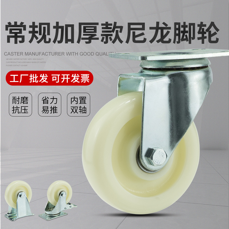 厚手中型ナイロンキャスター3寸4寸5寸固定万向ブレーキ付中型平板トレーラー手押し車車輪