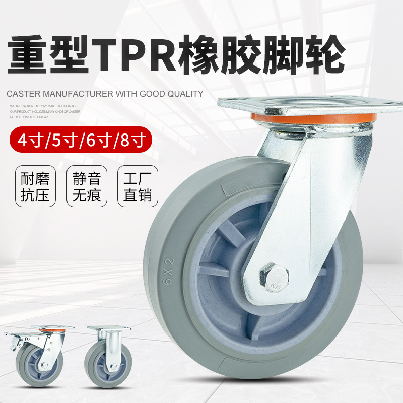 メーカー直販4インチ5インチ6インチ8インチ静音輪tpr重万能輪鉄芯pu輪手押し車車輪