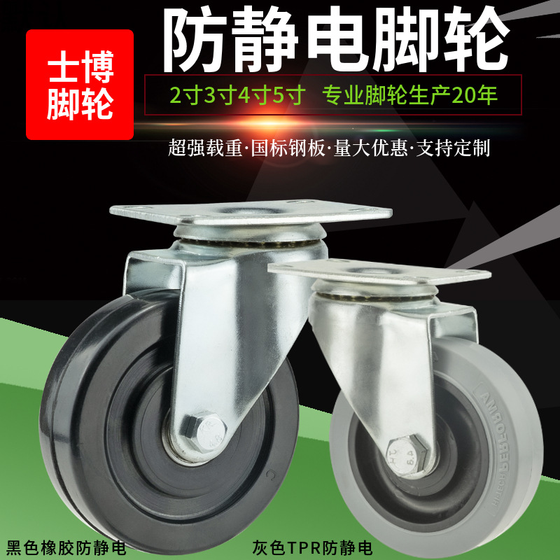 メーカー3インチ黒色帯電防止ゴム輪4インチキャスター万能輪ブレーキ付きリーン管導電押し車輪