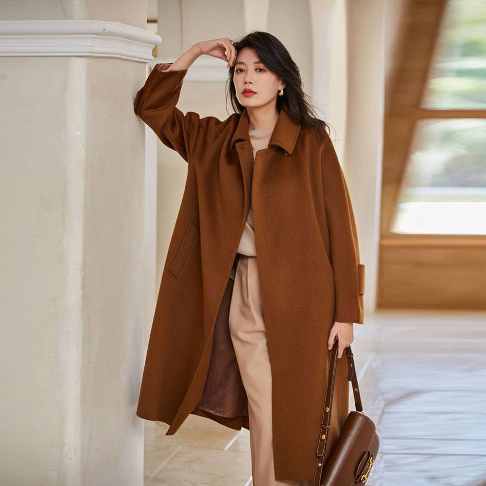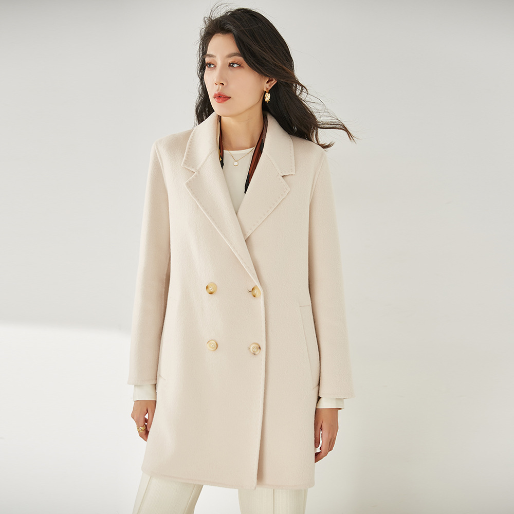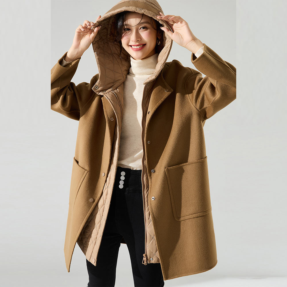 这款面料采用720g全羊毛双面呢,加可脱卸鹅绒内胆,一件衣服可以当两件穿。是种不一样的体验。即有大衣的软糯绒感,又增加了保暖性,使整件衣服轻薄不压身。