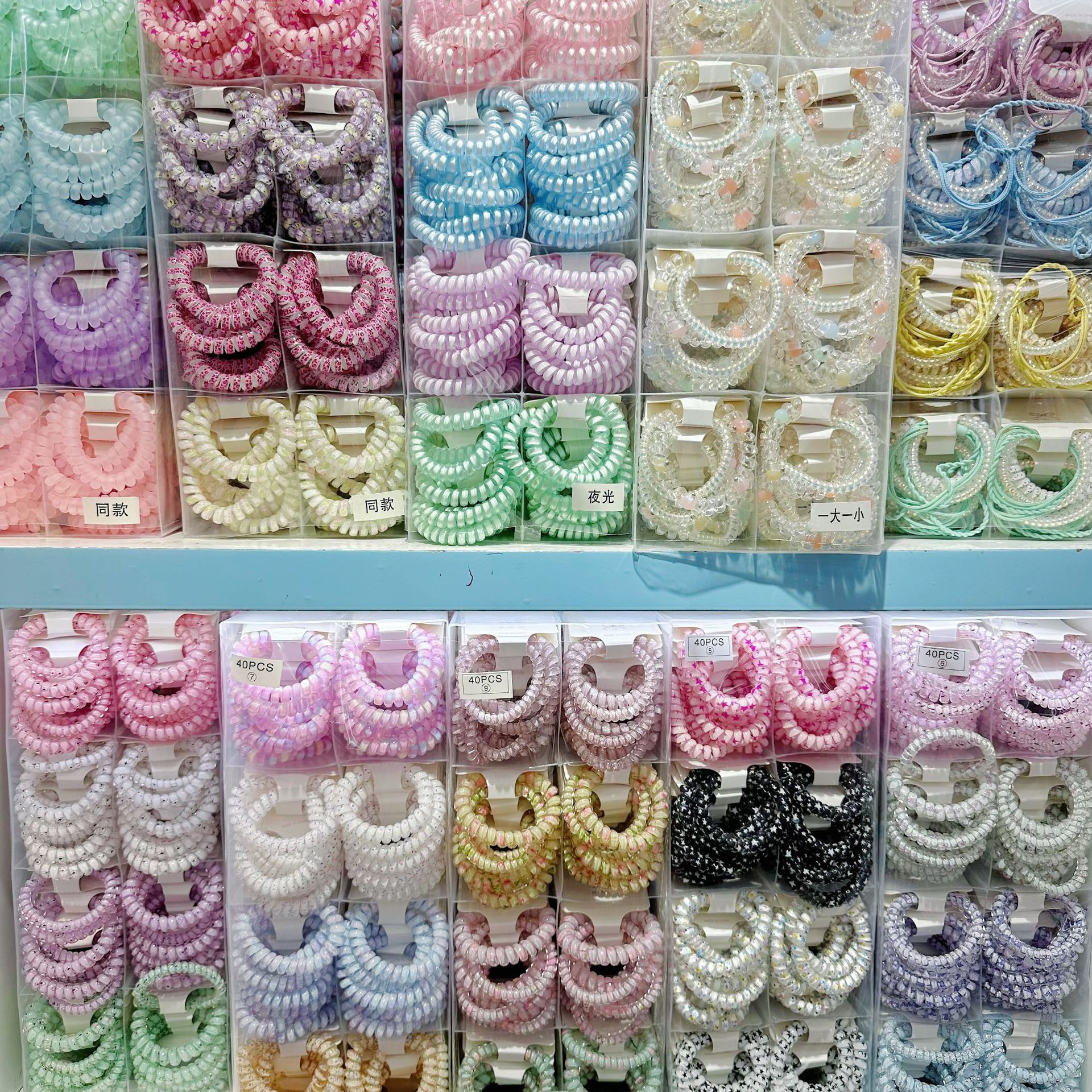 ヘアアクセサリー、ヘアゴム、髪を結ぶゴム、ヘアロープ、高弾性レインボーテレホンコードヘアリング、高弾性ヘアリング