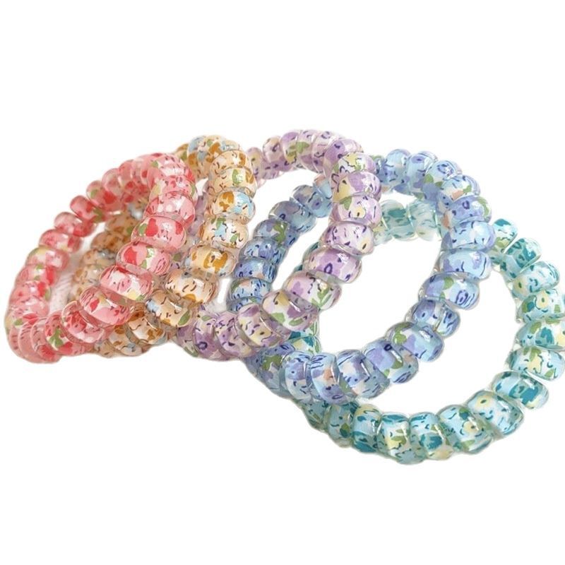 キャンデーの春の色のプリントの電話線は韓国版の小さい花を巻いて髪の毛の縄の高弾力の皮のカバーのひもを結びます。
