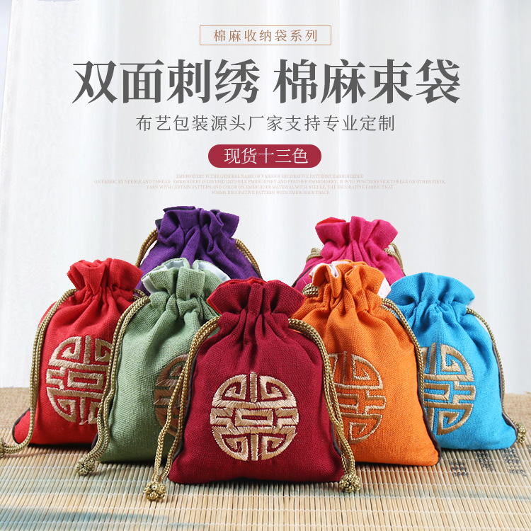 現物綿麻綿布袋錦袋アクセサリー袋文遊袋綿布錦袋手串袋卸売り