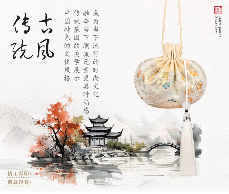 中国風漢服金糸宮廷馬年景観タッセル香袋車載飾り錦織香袋中国風香袋福袋