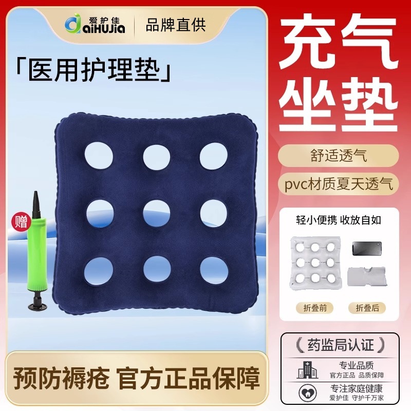 愛護佳医療用ケアパッド、空気注入式四角九穴大人用褥瘡防止クッション、車椅子用妊婦用圧迫性潰瘍防止クッション