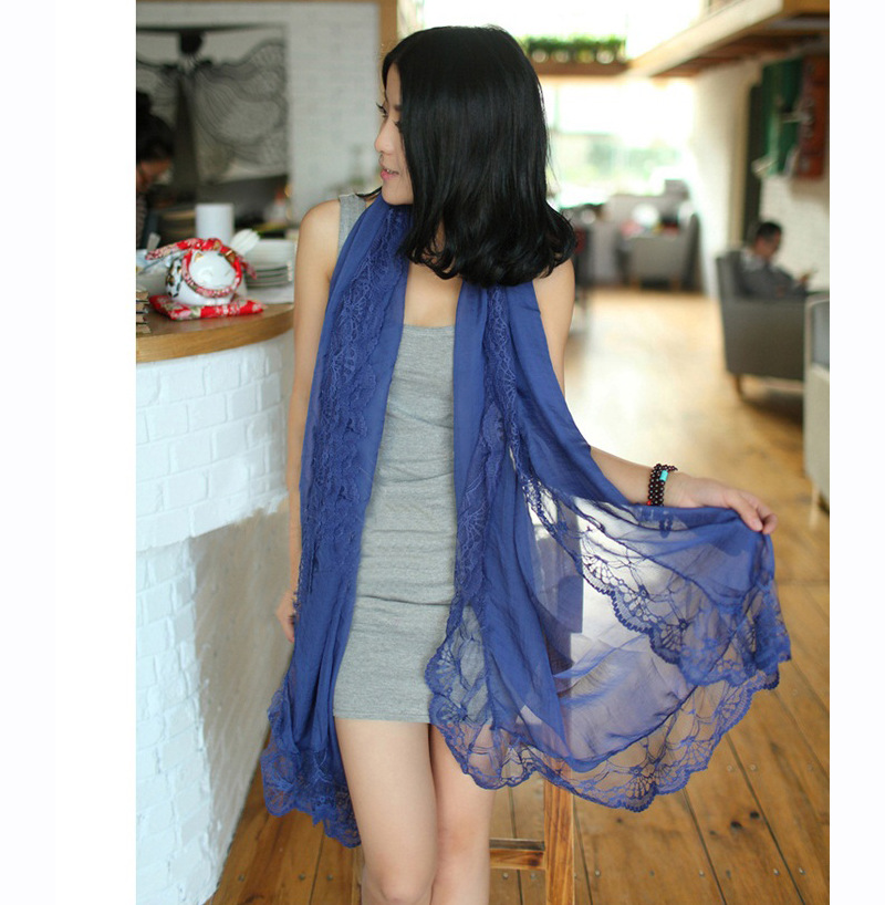 新商品の韓国シフォンのシルクタオルの大きいタイプの秋のマフラーの女性の純色はレースのマフラーの義烏の卸売りをつなぎ合わせます。